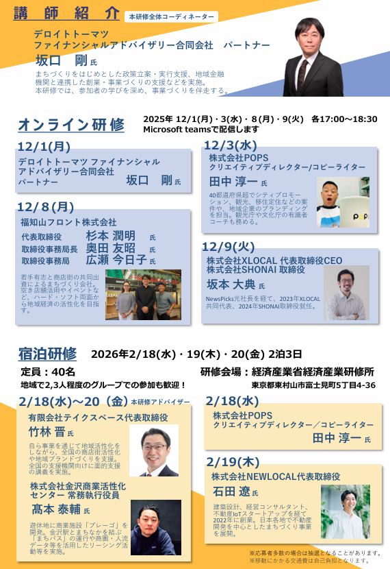今年も代表の竹林が経済産業省 中小企業庁主催の「まちづくり人材育成研修”マチスタート”」の講師で登壇します。